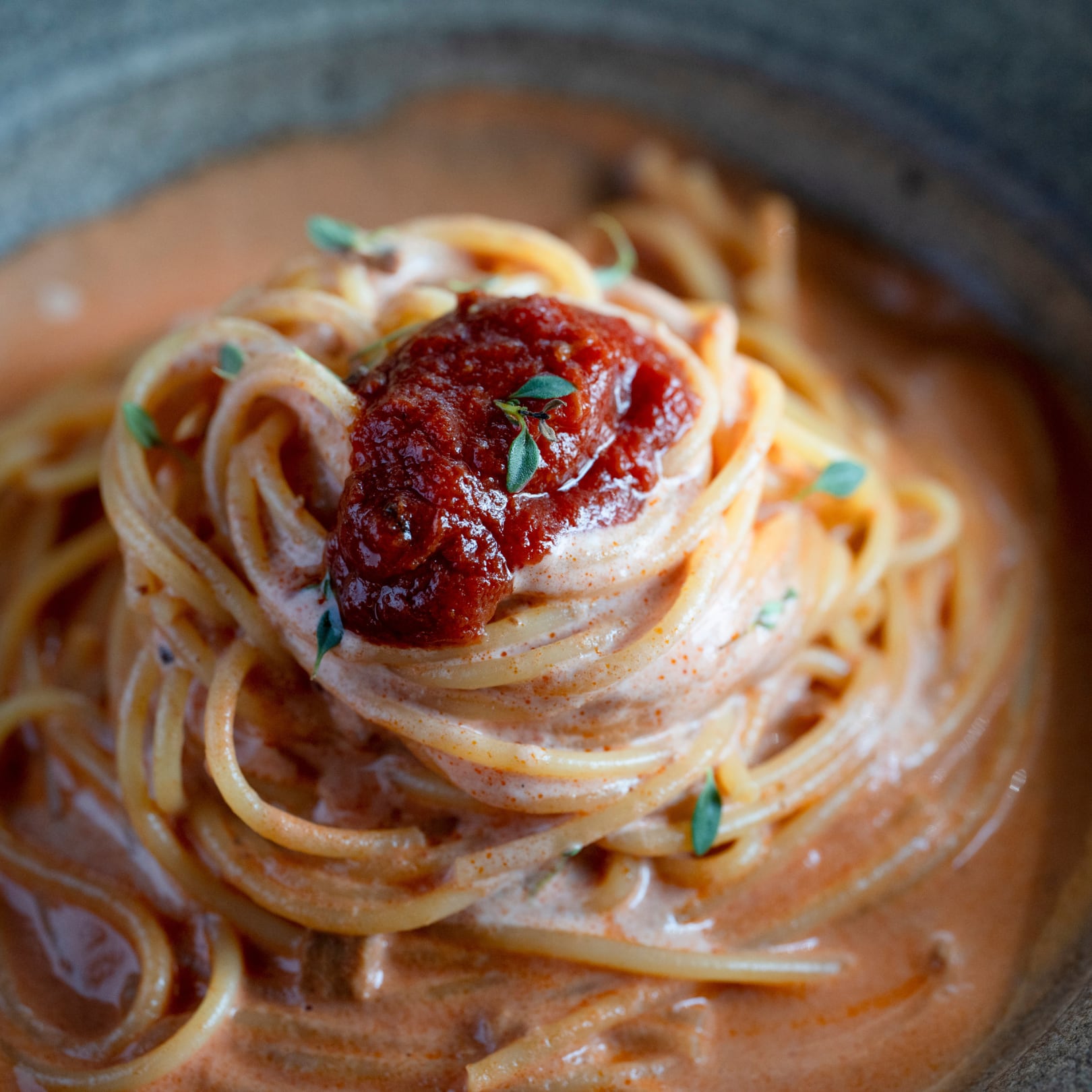 辛子明太子の旨みに、唐辛子を効かせたトマトベースのパスタソース。